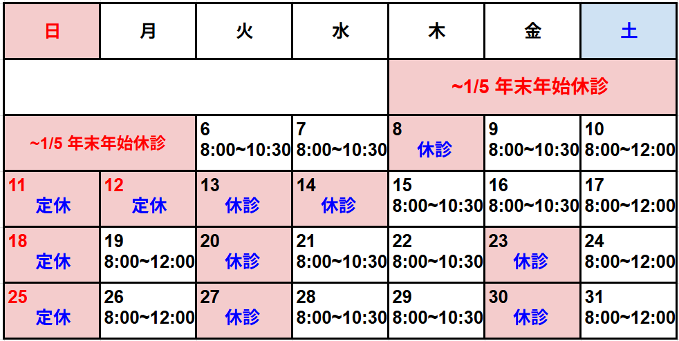 2025年12月の診察時間は下記の通りとなります。