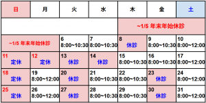 2025年12月の診察時間は下記の通りとなります。